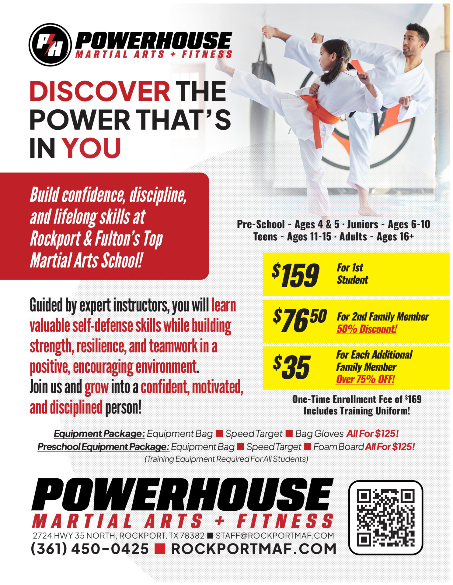 At Powerhouse Martial Arts & Fitness, we aren’t just teaching kicks and punches; we’re building a community. We offer flexible membership options designed to fit the busy lives of families and individuals alike. Whether you’re looking for a fun after-school activity for your child or a new way to stay active, our doors are open. Take a look at our programs below and become part of our family.